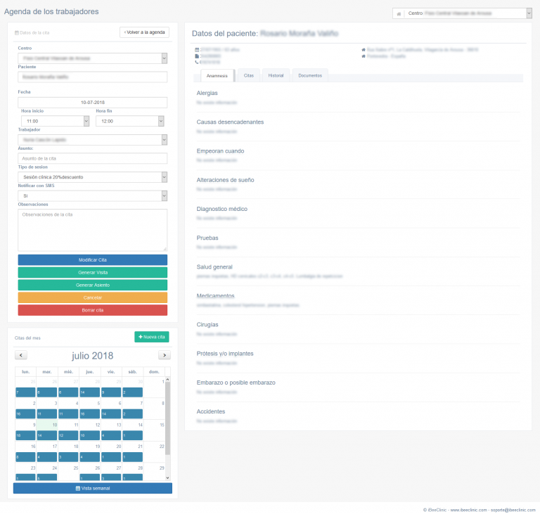Con esto hemos actualizado el módulo de la agenda para que desde la agenda puedas consultar los datos del paciente que tiene que tratar en la cita. Hemos colocado un nuevo botón en la parte superior del formulario de la cita para que accedas a la información del paciente.