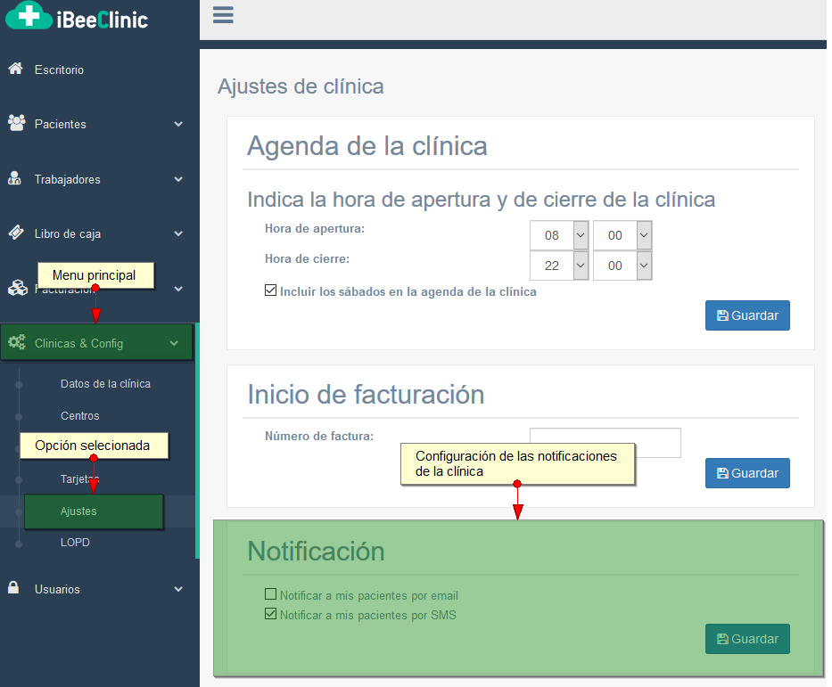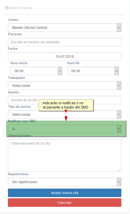 Para optimizar esta gestión iBeeClinic tiene implementado las notificaciones a pacientes. Para ello tiene dos notificaciones: