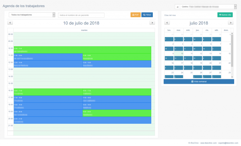 Vista diaria y semana de la agenda de citas de iBeeClinic
